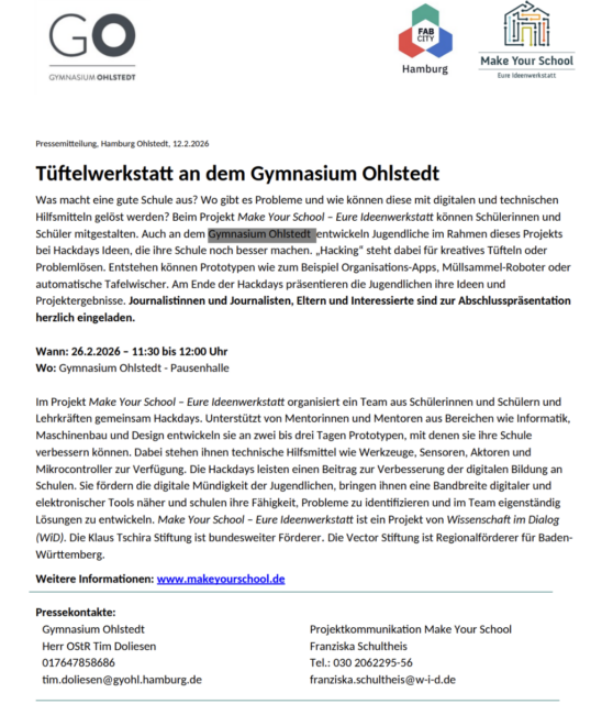Nehmen Sie gern Kontakt auf (stephan.koeller@gyohl.hamburg.de), wir würden uns sehr darüber freuen!!!