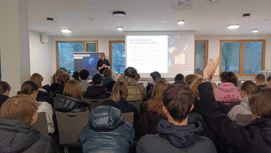 (Beitragsbild KI-generiert) Gibt es ein Mindestalter, ab dem man Menschen erst die nötige Reife für Entscheidungen zutraut? Warum und woran macht man diese Grenze fest? Gibt es denn auch eine Altersgrenze, ab der man Menschen nicht mehr für entscheidungsfähig hält? Zu diesen spannenden Fragen kamen Schüler*innen der Oberstufe mit dem Sozial- und Politikwissenschaftler Dr. Busen von der Universität Hamburg ins Gespräch. Im Zuge der Kampagne “Wir wollen’s wissen” besuchen Dozenten verschiedener DIsziplinen Schulen und kommen mit Schüler*innen ins Gespräch. Mitunter auch erschfrischend kontrovers, wie bei uns am GO.