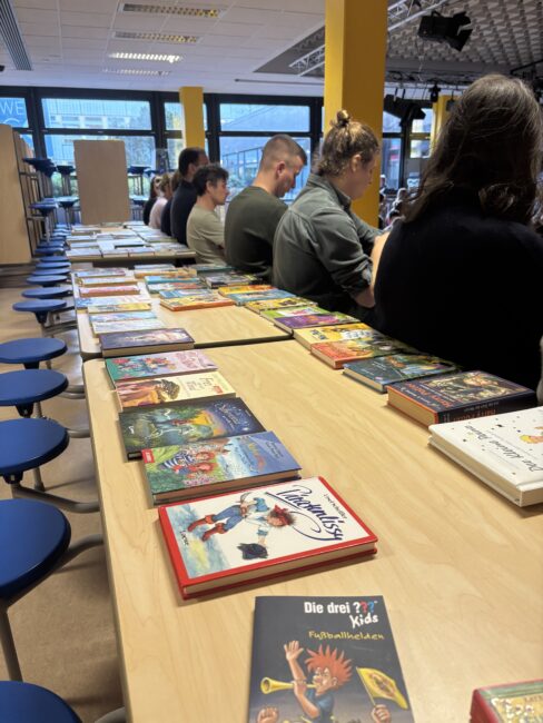 Nach so viel Lesespannung war Zeit für eine kleine Pause – und die nutzten die Schülerinnen und Schüler begeistert: Die Sozial-AG, geleitet von Herrn Möller (Verbindungslehrer) und Frau Skuddis vom Elternrat, hatte eine Büchertauschbörse vorbereitet. Mit Feuereifer stöberten die Kinder in den ausgelegten Büchern, tauschten, fachsimpelten und freuten sich über neue Lieblingsgeschichten. Die Aktion kam hervorragend an – ein herzliches Dankeschön an die engagierte AG und ihre Helferinnen und Helfer!